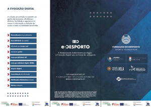 O objeto do projeto 044029 visa promover a modernização e capacitação da Administração Pública pela melhoria do acesso às TIC e a sua utilização e qualidade, através do reforço das aplicações TIC na Administração Pública em linha, aplicado ao setor do desporto. O projeto “e-Desporto” representa uma solução de transição tecnológica, informática, digital de gestão e administração – ecossistema digital para o universo desportivo federado alicerçado na reengenharia de processos (sistema de gestão documental e workflow).