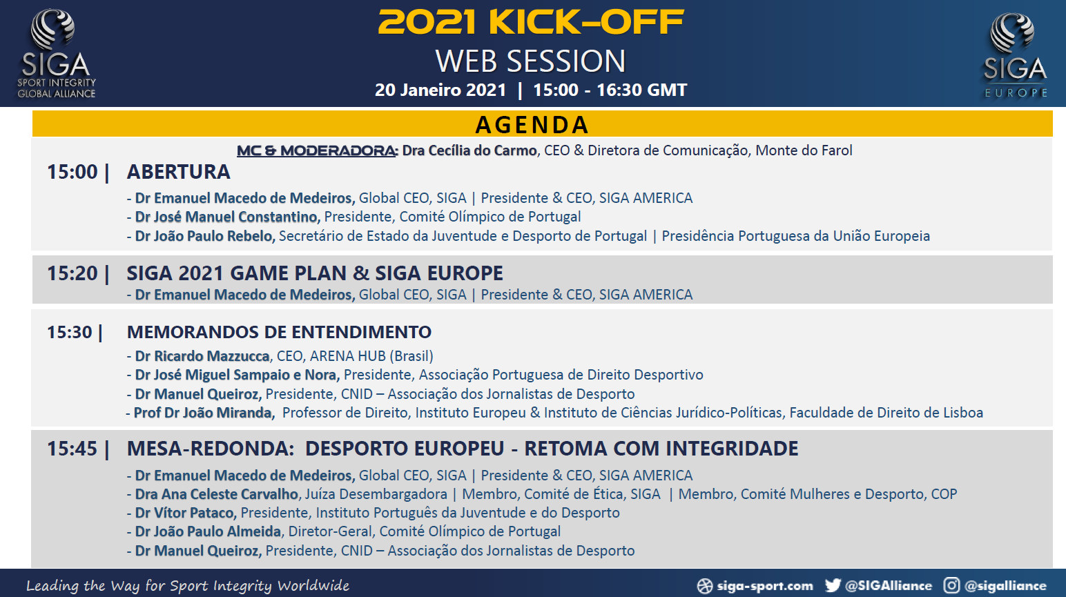 SIGA 2021 KICK-OFF SESSION – 20 Janeiro 2020 – 15:00 | 16:30 GMT – Via Zoom – Programa Oficial