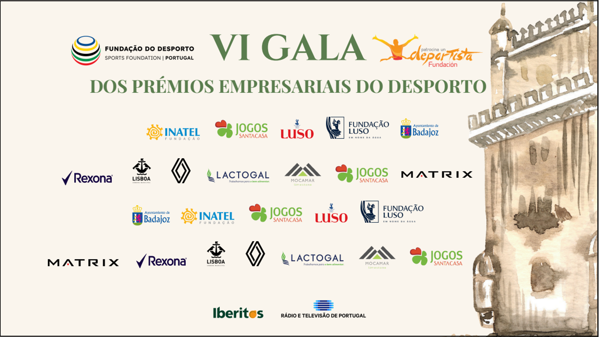 A VI Edição da Gala dos Prémios Empresariais do Desporto realiza-se no próximo dia 23 de outubro de 2025, na Estufa Fria, em Lisboa, numa iniciativa ibérica organizada pela Fundação do Desporto e pela Fundación Patrocina un Deportista.